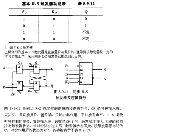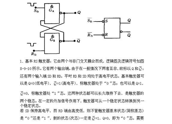 說明的是,此后RD由低恢復為高,觸發器仍能保持為“0”態。所以RD稱置“0”輸入端(也稱復位端)。同理,若RD保持高電平、SD端送人負脈沖,則觸發器一定置“1”狀態。SD稱置“1”輸入端(也稱置位端)。