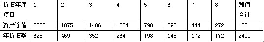 例9-2 輕工專用設備的資產原值(包括購置等)為2500萬元,折舊年限為8年,凈殘值率為4%。試分別用平均年限法、雙倍余額遞減法、年數總和法求其年折舊額: