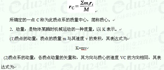 1.質心:對質量M=∑mi質點系,若其任一質點對某一固定點的矢徑為ri,則由矢徑