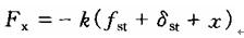 (3)受力分析。通常,將重物放在x軸正向的任一位置上進行受力分析。作用其上的力有重力P和彈性力F,力F在x軸上的投影為