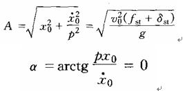 根據初始條件x0=0, ,可分別求得振幅A及初位相α為