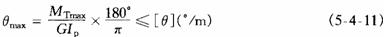 剛度條件 圓桿扭轉(zhuǎn)時的最大單位長度扭轉(zhuǎn)角不得超過規(guī)定的許可值,即