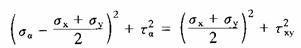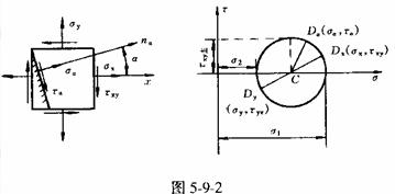在平面應力狀態σx、σy、τxy下,任意斜截面上的應力σσ與τσ間的關系式為一個圓方程。