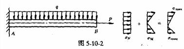 圖5—l0—2所示AB梁同時(shí)受軸向拉力P及橫向分布荷載q作用。