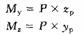 由軸向力引起軸力N;由橫向力引起彎矩Mz、剪力Qy。