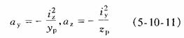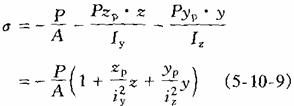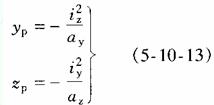 式中負(fù)號(hào)表明,截距ay、az分別與外力作用點(diǎn)位置yp、zp反號(hào),即中性軸與外力作用點(diǎn) 分別處于形心的兩側(cè)。