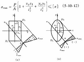 圖5—1—3所示桿件受偏心壓力(或拉力)作用時(shí),將同時(shí)產(chǎn)生軸向壓縮(拉伸)和平面彎曲兩種基本變形。