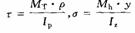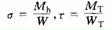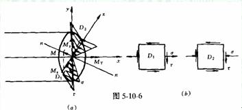 Mz,剪力Vy、Vz通常略去不計。則該 截面上任一點(y,z)處的應力分量有扭轉剪應力τ,及彎曲正應力σ。若構件的橫截面為圓形或空心圓截面。由于過圓形或空心圓截面形心的任一軸均為形心主慣性軸,故可先計算合成彎矩
