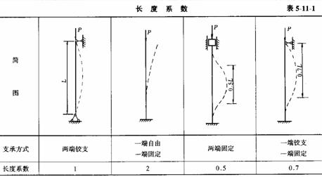 μ——長度系數,與桿兩端的約束條件有關,常見的各種支承方式的長度系數見下表。
