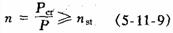 穩定條件 壓桿具有的工作安全系數n應不低于規定的穩定安全系數nst