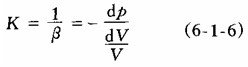 由于壓強增大時體積減小,dV與dp異號,所以在上式中加一負號。由于質量為密度和體積的乘積,β也可表示為密度的關系