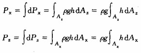 pz的方向取決于受壓曲面和液體的相對(duì)位置。流體在上方向向下;流體在下方向向上。也就是說(shuō)壓力體內(nèi)有水者方向向下,壓力體內(nèi)無(wú)水者方向向上。求出px和pz后,再求出合力p,則