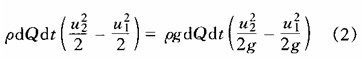 由于流體不可壓縮、新舊的位置1—1'、2—2'所占據的體積等于dQdt,質量等于ρdQdt。根據物理學中的公式,動能0.5mu2,位能mgz,所以動能增值為: