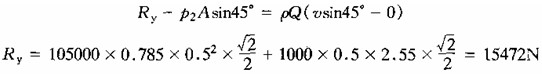 流體對鎮墩的作用力P與R的大小相等方向相反。