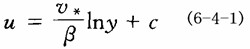 紊流的流速分布,靠近固體邊界處與核心區域是不同的。緊貼邊界的流體質點流速為零,近邊界處很薄的流層內,速度由零增至一定值,所以在此薄層內速度梯度很大,粘性切應力τy不容忽視。而由于壁面限制附近流體質點做橫向運動,附加切應力τt可以忽略。這一薄層被稱為粘性底層。在粘性底層內流速分布可作為直線分布。粘性底層以外是紊流核心,在紊流核心區域內由于質點相互摻混和動量交換,使斷面上速度趨于平均化,分析和實驗結果說明紊流過水斷面上流速按對數曲線分布,一般公式為