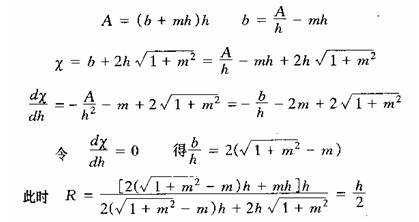 當采用梯形斷面時,若已知過水斷面面積A,邊坡系數m,則由