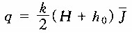 上式為集水廊道浸潤曲線方程。設集水廊道中的動水位為h0,含水層在集水廊道未工作前的厚度H,按上式,有