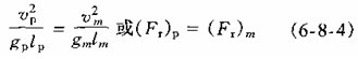 式中 Fr—弗魯特數,其物理意義在于反映了慣性力與重力的比值。式(6—8—4)表明:兩個流動相應點弗魯特數相等,重力相似。