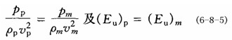 式中 Eu為歐拉數,其物理意義在于它反映了壓力與慣性力的比值。因壓力由流動情況決定,不像黏性力和重力能決定流動的特性,故Eu數不是獨立的相似準則。