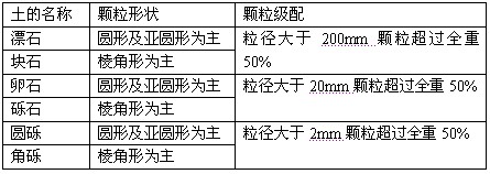 粒徑大于2mm的顆粒含量超過全重50%的土稱為碎石土。根據(jù)顆粒的形狀碎石土分 為漂石、塊石、卵石、碎石、圓礫和角礫等。見表12-1-3 (α) ,密實(shí)度按表12-1-3 (b) 分類。