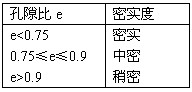 粉土為介于砂土與黏性土之間,塑性指數(shù)Ip<10,且粒徑大于0.075mm的顆粒含量不超過全重50%的土。粉土的密實(shí)度應(yīng)根據(jù)孔隙比e劃分為密實(shí)、中密和稍密;其濕度 應(yīng)根據(jù)含水量ω(% )劃分為稍濕、濕、很濕。