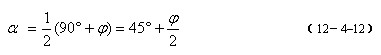土處于極限平衡狀態時極限平衡面與大主應力作用面間的夾角 ,可由圖4–9中的幾何關系得到: