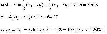 10.某一點的應力狀態為σ1 =400kPa,σ3 =200kPa, c=20kPa,Φ= 20°,則該點處于下列(A )項所述情況。