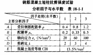 對于科研性試驗,試件是按照研究要求專門設(shè)計制造的,如研究鋼筋混凝土短柱抗剪強度試驗時,具有影響的參數(shù)有混凝土強度等級,受拉鋼筋配筋率,配箍率,軸向應(yīng)力和剪跨比等,稱為主要分析因子。而對每一參數(shù)又要考慮有幾種狀態(tài),如剪跨比λ=2,3,4…等,稱為水平數(shù)。試件設(shè)計時必須要將它們相互組合起來,才能研究各個參數(shù)與其相應(yīng)各種狀態(tài)對試驗問題的影響。因此參數(shù)與備種狀態(tài)愈多,即因子數(shù)與水平數(shù)愈多,則要求的試件數(shù)量也就自然增加。如按表18—1—l所列研究短柱抗剪強度時混凝上只用一種強度等級C20,實際因子數(shù)為4,水平數(shù)為3時,由表18—1—2可見要求試件數(shù)為81個。