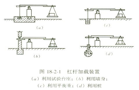 杠桿加載也屬于重力加載的一種。當利用重物作為集中荷載受到荷載量的限制時,利用杠桿原理,將荷重放大作用于結構上。杠桿加載的裝置根據試驗室或現場試驗條件的不同,可以有如圖18—2—1的幾種方案。