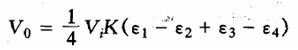 如四個應變計規格相同,即R1=R2=R3=R4,應變計靈敏系數K1=K2=K3=K4=K,則有
