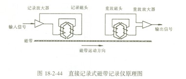 磁帶記錄儀由磁帶、磁頭、磁帶傳動機構、放大器和調制器等組成,它的原理見圖18—2—44。記錄時,從傳感器來的信號輸入到磁帶記錄儀,經過放大器和調制器的處理,通過記錄磁頭把電信號轉換成磁信號,記錄在以規定速度作勻速運動的磁帶上。重放時,使記錄有信號的磁帶按原來記錄時的速度(也可以改變速度)作勻速運動,通過重放磁頭從磁帶“讀出”磁信號、并轉換成電信號,經過放大器和調制器的處理,輸出給其他儀器。