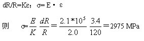 例題:電阻應變片(K=2.0)粘貼于軸向拉伸的試件表面,應變片軸線與試件軸線平行,試件材料E= 2.1×105MPa,若應變片的阻值變化為3.400,則應力為( )。
