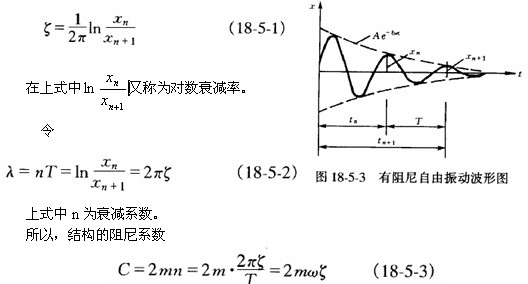 利用自由振動法實測的振動曲線圖形(圖18—5—3)所得的振幅變化確定阻尼比。