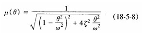 如以μ(θ)為縱坐標,以θ為橫坐標,即可畫出動力系數(共振曲線)的曲線,見圖18—5—5所示。