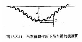 在測量振幅時,要注意結構在強迫振動荷載作用下,既有靜變形(或是頻率很低的變形),也有動變形,圖18—5—11為吊車在吊車梁上運行時,跨中撓度就是靜變形和振幅的疊加。