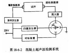 超聲波脈沖實質上是超聲檢測儀的高頻電振蕩激勵儀器換能器中的壓電晶體,由壓電效應產生的機械振動發出的聲波在介質中傳播(圖18—6—2)。混凝土強度愈高,相應超聲聲速也愈大.經試驗歸納,建立混凝土強度與聲速的關系曲線(—v曲線)或經驗公式。