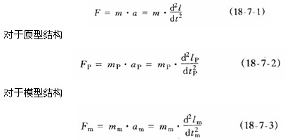 式中F、m、l和t分別為慣性力、質(zhì)量,位移和時間。下標p與m分別表示原型和模型。由于要求各同名物理量之間有固定的比例常數(shù)