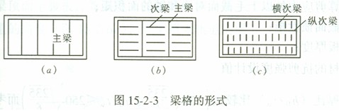 (1)簡式梁格(圖15?2-3a)只有主梁,適用于梁跨度較小的情況;