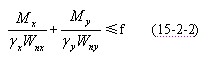 Mx,My——繞x軸和y軸的彎矩(對工字形截面:x軸為強(qiáng)軸、y軸為弱軸,);