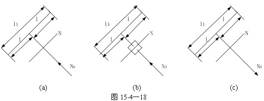 ③相交另一桿受拉,交叉點不中斷(圖15-4—18c)