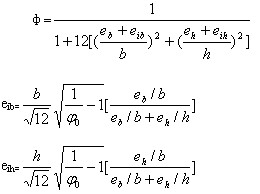 式中 eb、eh--軸向力在截面重心x軸、y軸方向的偏心距,eb、eh宜分別不大于0.5x和0.5y;