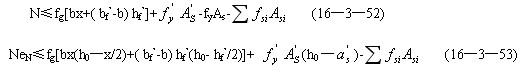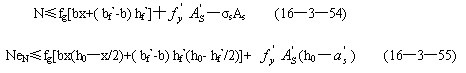 (3)當受壓區高度x> hf’時,則應考慮腹板的受壓作用,應按下列公式計算: