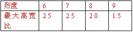 在上表中,雖然對砌體房屋的總高度作了規(guī)定,但是如果房屋的寬度過窄,則也會形成不利的房型,有時連靜力驗算也滿足不了。為了保證房屋的穩(wěn)定性,避免房屋發(fā)生整體彎曲破壞,不使地震作用傾覆力矩引起的彎曲應(yīng)力超過砌體的抗拉強度而導(dǎo)致墻體出現(xiàn)水平裂縫等,所以對多層砌體房屋總高度與總寬度的比值作了限制,見表16-6-2