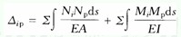 根據理論分析和實驗測定,對比較細長的受彎桿件(桿件截面高度h與桿長l之比<1/5時)來講,式(3—4)中彎曲變形引起的位移是主要的,而軸向變形、剪切變形對位移的影響較小,一般可忽略不計,于是可得位移的簡化計算公式為: