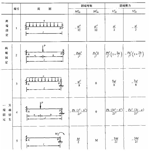 等截面直桿的固端彎矩和固端剪力 表4—1