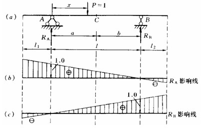 影響線分別如圖5—1b、c所示。設(shè)反力向上時為正,反之為負。