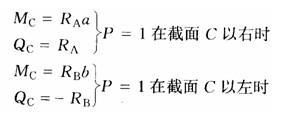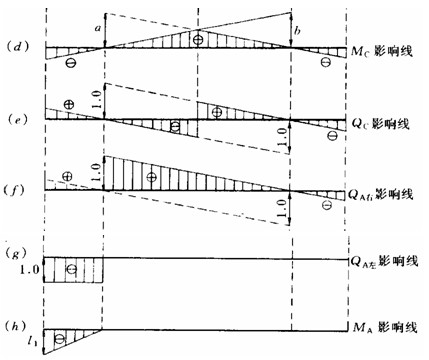 據(jù)此作出的Mc、Qc影響線分別如圖5—1d、e所示。