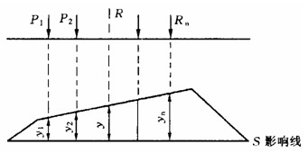 式中 R為集中荷載組的合力,y為與R對應(yīng)影響線的豎標(biāo)值。