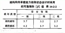 表中延性破壞是指結構構件在破壞前有明顯的變形或其他預兆,故[β] 可定得稍低些、脆性破壞是指結構構件在破壞前無明顯的變形或其他預兆,故[β] 應定得高些。