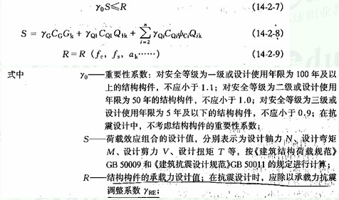 對于承載能力極限狀態,應考慮荷載效應的基本組合,必要時尚應考慮荷載效應的偶然組合。當按基本組合進行構件的強度設計時,其表達式為:
